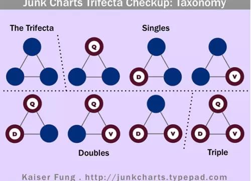这是由KaiserFung开发的一个很好的资源,Trifecta Checkup是数据可视化评价的总体框架,他把所有的数据可视化评论为八种类型。当Fung发布这个产品的时候我们已经有所报道,但现在他提供了“权威指南”,使我们更容易理解它是如何工作的,以及如何在分析各种数据可视化时运用它。